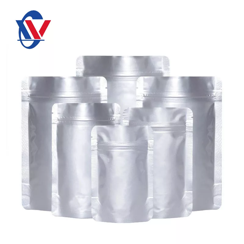 A Mylar táskákat tiszta alumínium táskáknak is nevezik. Az alumínium fóliazsák csomagolása általában az alumínium-műanyag kompozit vákuumcsomagoló táskákra utal. Az ilyen típusú termékek nagy precíziós gépek és berendezések, kémiai alapanyagok és gyógyszerészeti közbenső termékek nedvességálló, fényálló és vákuumcsomagolásához alkalmasak. Leginkább egy négyrétegű szerkezetet alkalmaz, jó vízálló és oxigénálló funkciókkal. Nincsenek korlátozások. Különböző specifikációk és stílusú csomagolózsákok testreszabhatók. Készíthetők lapos táskákká, háromdimenziós táskákká, harmonikás táskákká és egyéb stílusokká. A terméket a GB és az ASTM szabványok alapján kell tesztelni, és a termék megfelel a környezetvédelmi védelmi követelményeknek (harmadik féltől származó tesztjelentések nyújthatók). A termék megfelel az EU és Észak -Amerika csomagolóanyagok legszigorúbb környezetvédelmi előírásainak.